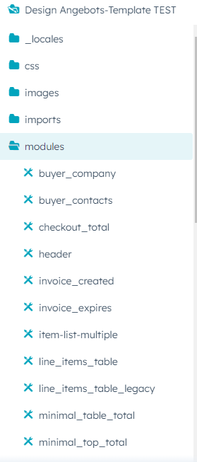 - In "modules" einzelne Blöcke anpassbar, "line_items_table" ist z.B. Tabelle